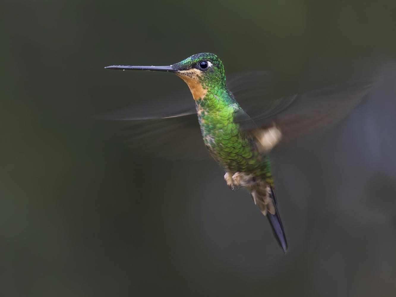 Buff-winged Starfrontlet in flight