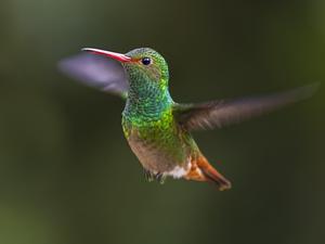 Rufous-tailed Hummingbird in flight