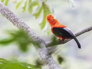 In September 2019 I was able to visit a so-called lek of various male Andean Cock of the Rocks (Rupicola peruvianus). This one perched on a branch for a few seconds while it made the distinctive sounds of a bird trying to court a female.