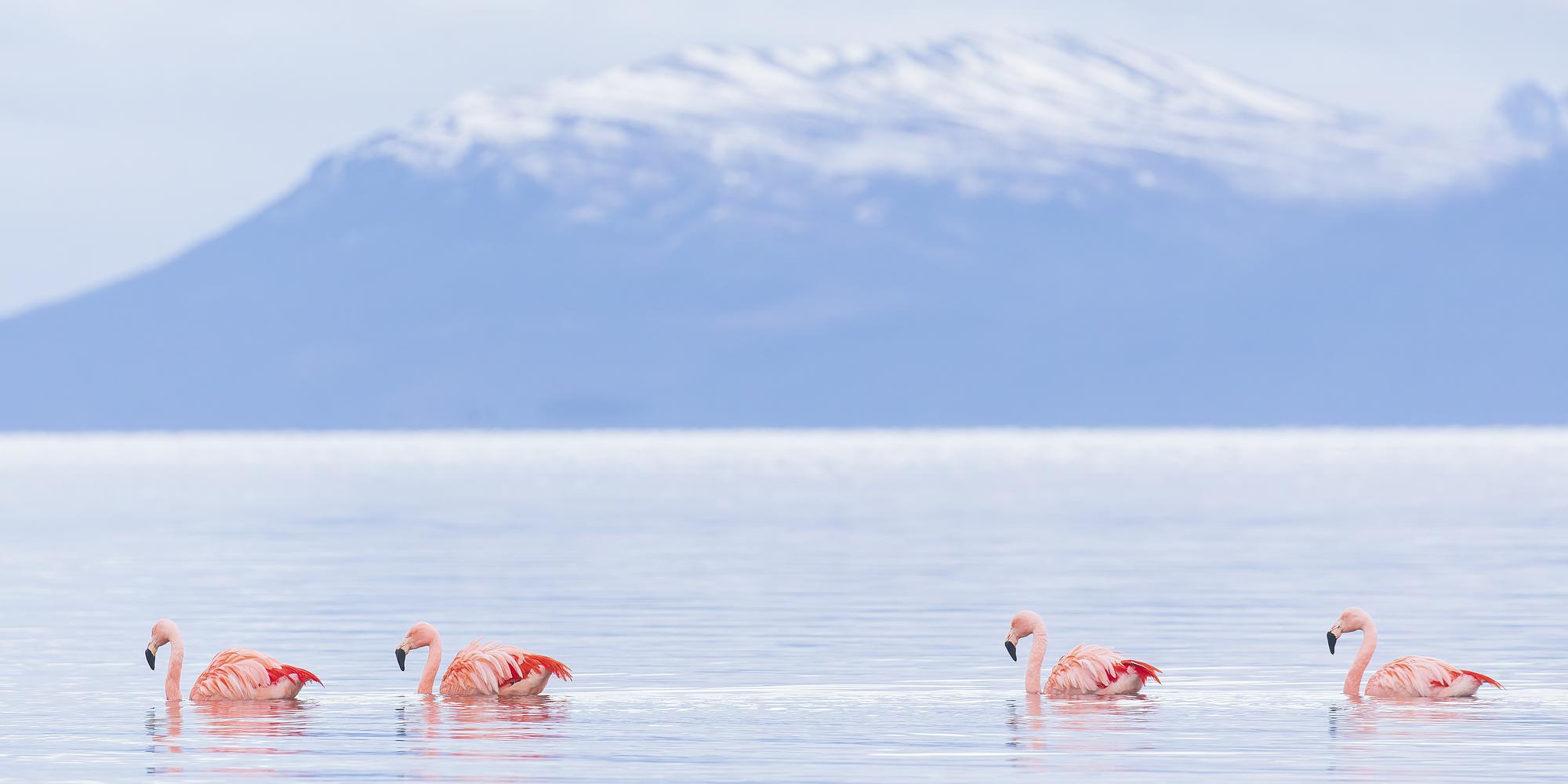 These four Chilean Flamingos (Phoenicopterus chilensis) had found a nice spot to get some rest. I saw them in June 2019 in Chilean Patagonia.